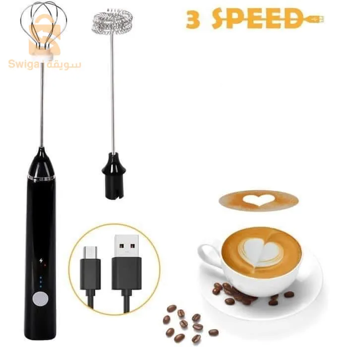 رغوة الحليب، خفاقة كهربائية صغيرة محمولة قابلة للشحن عبر USB، 3 سرعات مع رأس حلزوني مزدوج